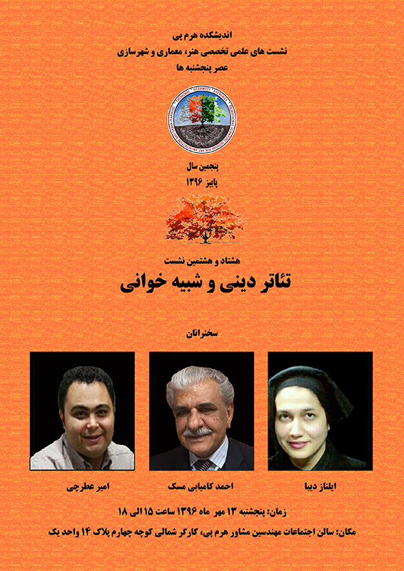 هشتاد و هشتمین نشست از سلسله نشست های علمی تخصصی عصر پنجشنبه اندیشکده هرم پی به موضوع تئاتر دینی و شبیه خوانی اختصاص یافت. در این نشست با حضور اساتید و متخصصین این حوزه موضوع مذکور مورد تحلیل و بررسی قرار گرفت.