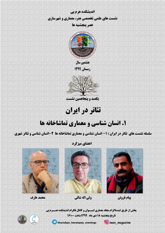 صد و پنجاهمین نشست از سلسله نشست های علمی تخصصی عصر پنجشنبه اندیشکده هرم پی ، اولین میزگرد تخصصی تئاتر در ایران اختصاص بود که در این نشست مجازی اساتید و متخصصین این حوزه به تحلیل و بررسی موضوع انسان شناسی و معماری تماشاخانه ها پرداختند.