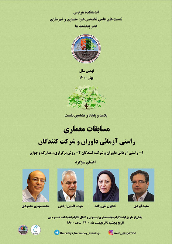 صد و پنجاه و هشتمین نشست از سلسله نشست های علمی تخصصی عصر پنجشنبه اندیشکده هرم پی اولین میزگرد تخصصی مسابقات معماری با عنوان راستی آزمائی داوران و شرکت کنندگان بود. در این نشست که به صورت مجازی برگزار شد با حضور اساتید و متخصصین این حوزه به تحلیل و بررسی موضوع مذکور پرداخته شد.