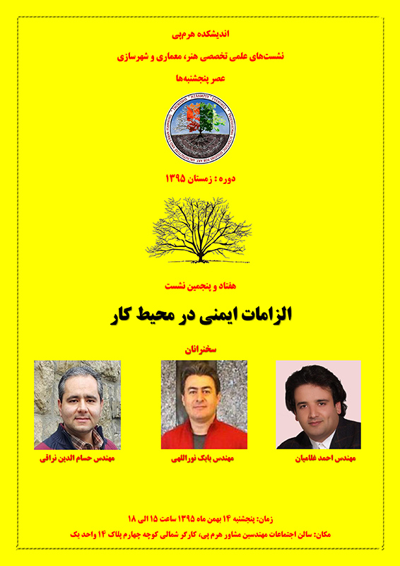 هفتاد و پنجمین نشست از سلسله نشست های عصر پنجشنبه اندیشکده هرم پی به موضوع الزامات ایمنی در محیط کار اختصاص یافت. در این نشست با حضور اساتید و متخصصان موضوع مذکور مورد بررسی و تحلیل قرار گرفت.