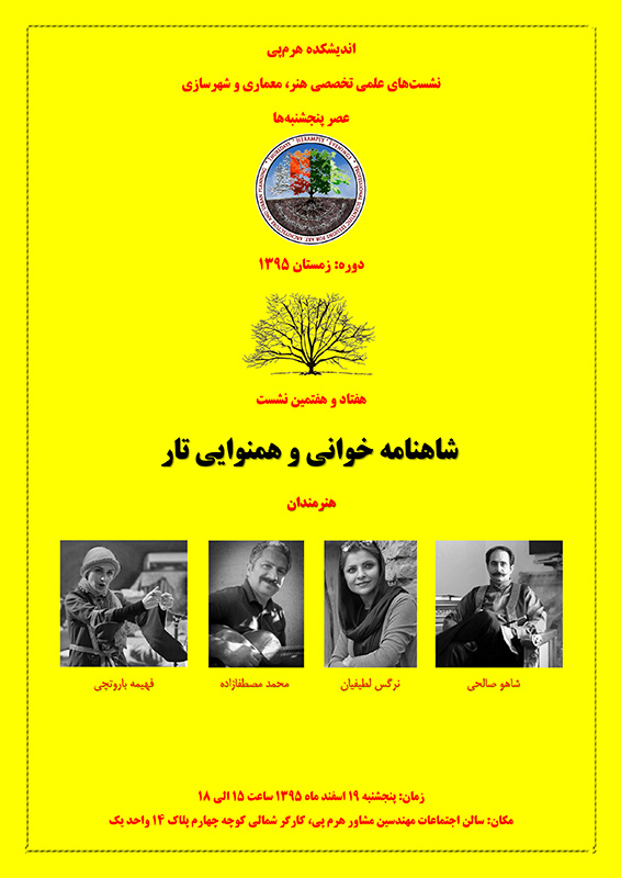 هفتاد و هفتمین نشست از سلسله نشست های علمی تخصصی اندیشکده هرم پی با موضوع شاهنامه خوانی و همنوایی تار با حضور تعدادی از هنرمندان عرصه موسیقی و تئاتر برگزار شد. در آخرین نشست سال 1395 به بازگویی داستان های شاهنامه پرداختیم.