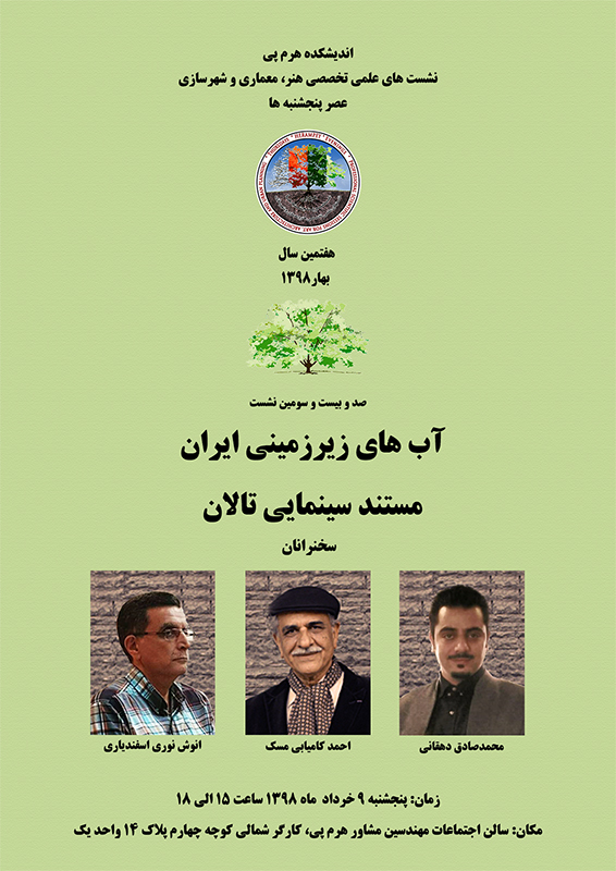 صد و بیست و سومین نشست از سلسله نشست های علمی تخصصی عصر پنجشنبه اندیشکده هرم پی با موضوع آب های زیرزمینی ایران - مستند سینمایی تالان برگزار شد. در این نشست با حضور اساتید و متخصصین این حوزه به تحلیل و بررسی موضوع مذکور پرداخته شد.