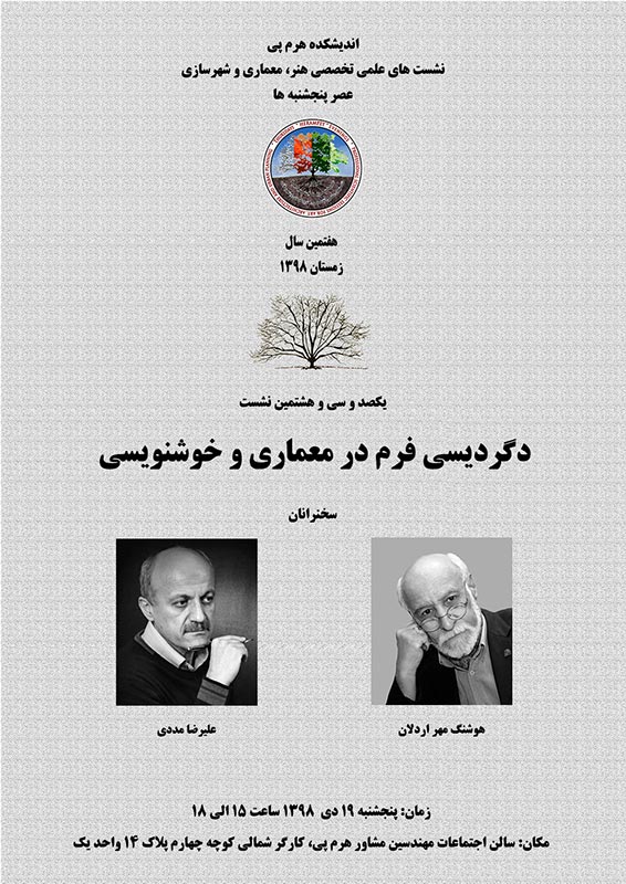 صد و سی و هشتمین نشست از سلسه نشست های علمی تخصصی عصر پنجشنبه اندیشکده هرم پی به موضوع دگردیسی فرم در معماری و خوشنویسی اختصاص یافت. در این نشست با حضور اساتید و متخصصین این حوزه موضوع مذکور مورد تحلیل و بررسی قرار گرفت.
