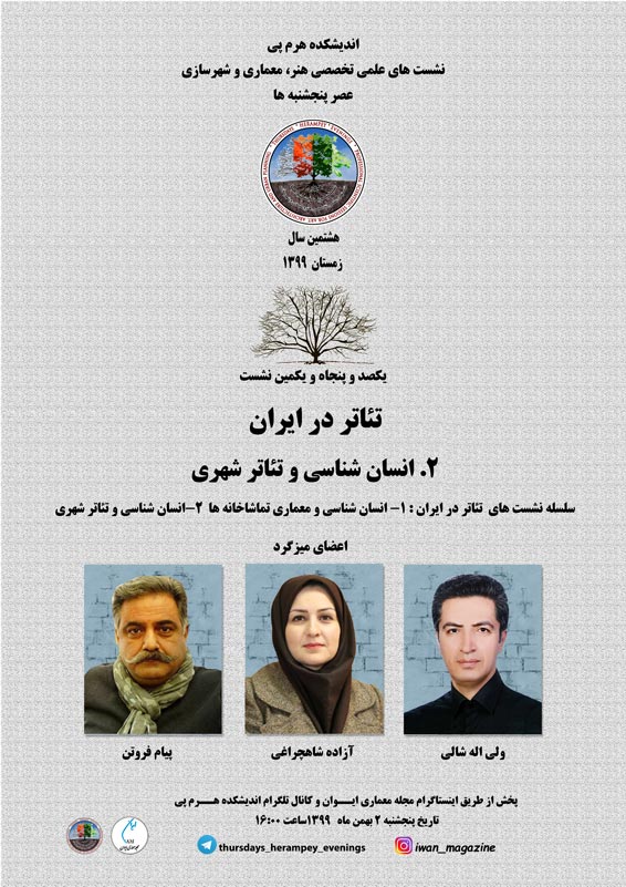 صد و پنجاه و یکمین نشست از سلسله نشست های علمی تخصصی عصر پنجشنبه اندیشکده هرم پی آخرین میزگرد تخصصی تئاتر در ایران در گذر زمان با عنوان انسان شناسی و تئاتر شهری بود. در این نشست که بصورت مجازی برگزار شد با حضور اساتید و متخصصین این حوزه به تحلیل و بررسی این موضوع پرداخته شد.