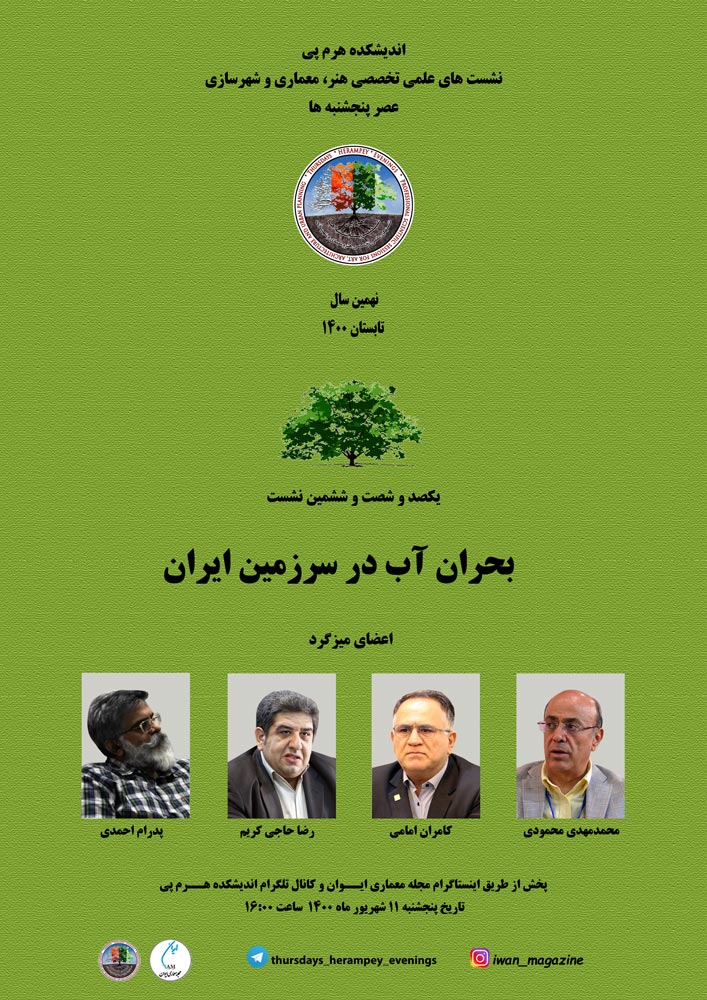 بحران آب در سرزمین ایران موضوع صد و شصت و ششمین نشست از سلسله نشست های علمی تخصصی عصر پنجشنبه اندیشکده هرم پی بود. در این نشست که بصورت مجازی برگزار شد با حضور متخصصین و اساتید این حوزه به تحلیل و بررسی موضوع مذکور پرداخته شد.