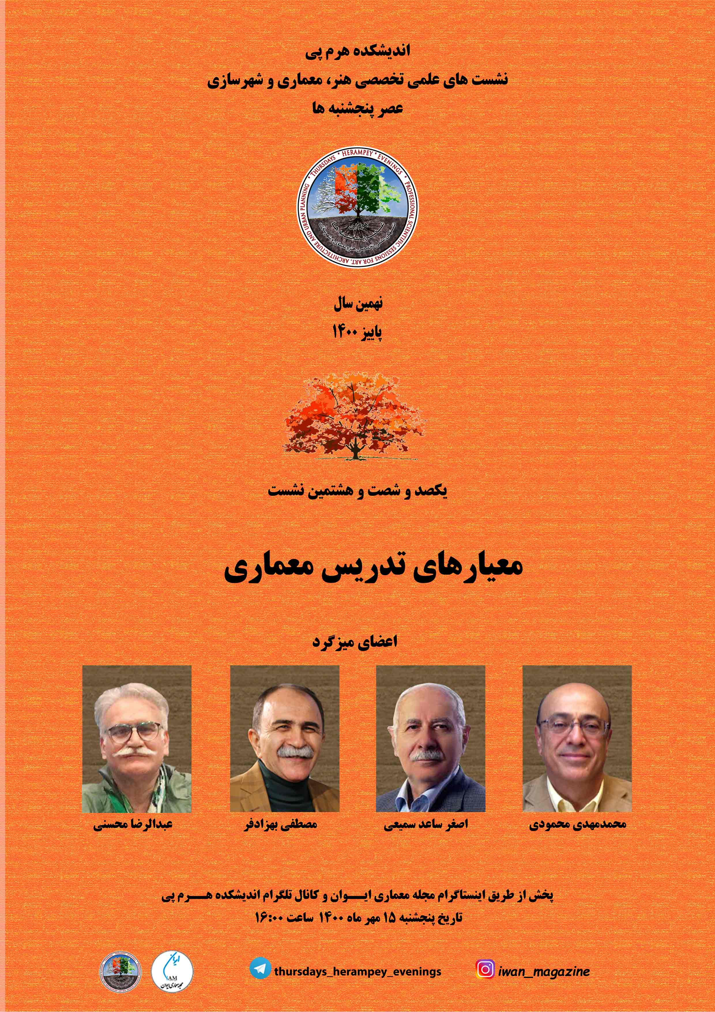 یکصد و شصت و هشتمین نشست از نشست های اندیشکده هرم پی در پانزدهم مهر ماه 1400 با حضور اساتید این حوزه به صورت مجازی برگزار شد. در این نشست موضوع معیارهای تدریس معماری مورد بررسی و تحلیل قرار گرفت.